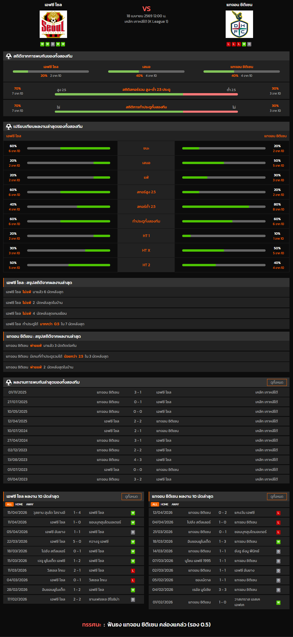 วิเคราะห์บอล เกาหลี ดิวิชั่น 1 2025-26 เอฟซี โซล VS แทจอน ซิติเซน