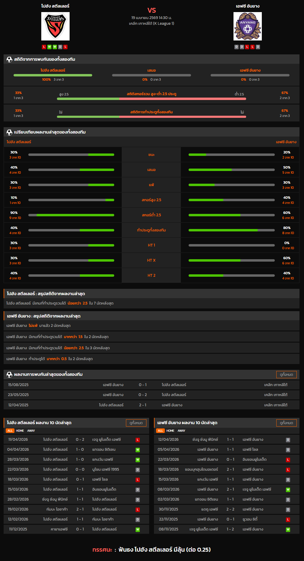 วิเคราะห์บอล เกาหลี ดิวิชั่น 1 2025-26 โปฮัง สตีลเลอร์ VS เอฟซี อันยาง