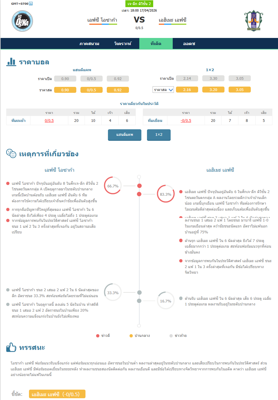 วิเคราะห์บอล เจแปน เจ-ลีก ดิวิชั่น 2 2026 เอฟซี โอซาก้า vs เอฮิเมะ เอฟซี