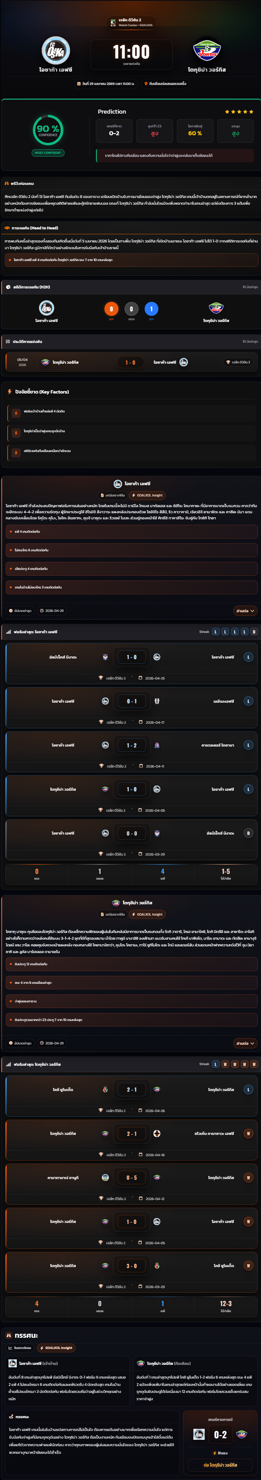 วิเคราะห์บอล เจแปน เจ-ลีก 2 2026 โอซาก้า เอฟซี vs โตกุชิม่า วอร์ทิส