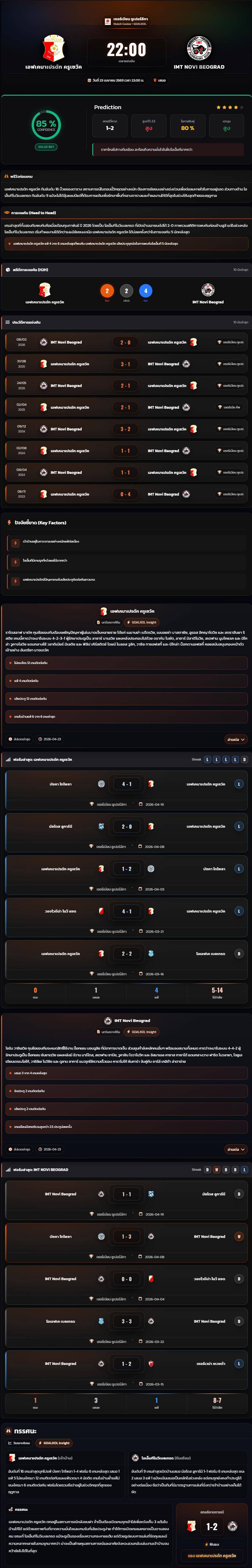 วิเคราะห์บอล เซอร์เบียน ซูเปอร์ลีกา 2025-26 เอฟเคนาเปรดัก ครูเซวัค vs IMT Novi Beograd