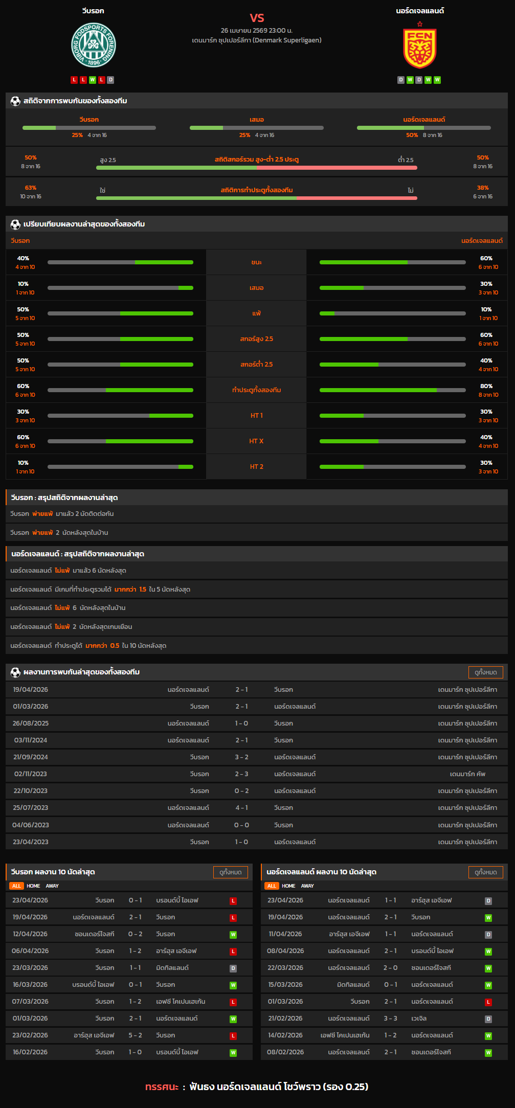วิเคราะห์บอล เดนมาร์ก ซุปเปอร์ลีกา 2025-26 วีบรอก VS นอร์ดเจลแลนด์