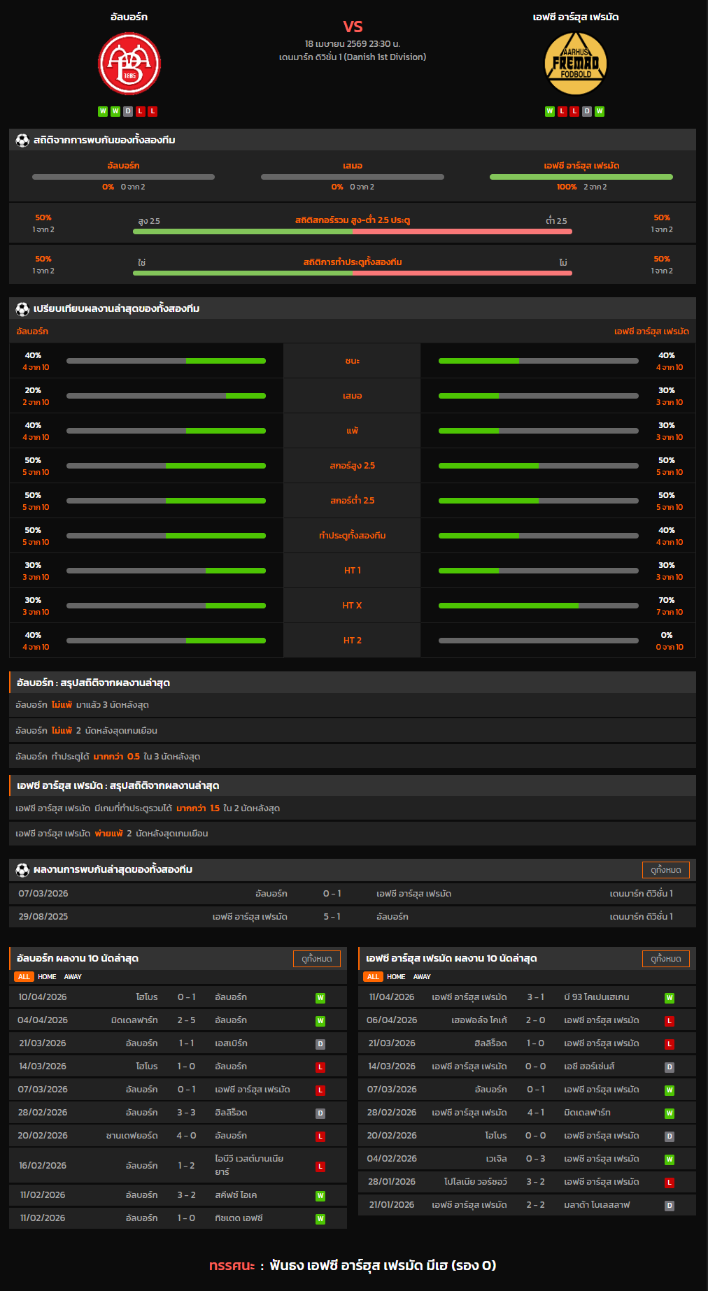วิเคราะห์บอล เดนมาร์ก ดิวิชั่น 1 2025-26 อัลบอร์ก VS เอฟซี อาร์ฮุส เฟรมัด