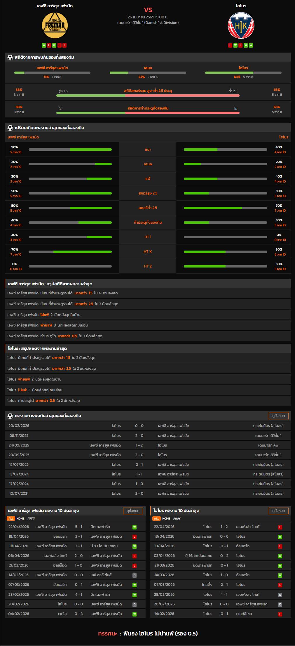 วิเคราะห์บอล เดนมาร์ก ดิวิชั่น 1 2025-26 เอฟซี อาร์ฮุส เฟรมัด VS โฮโบร