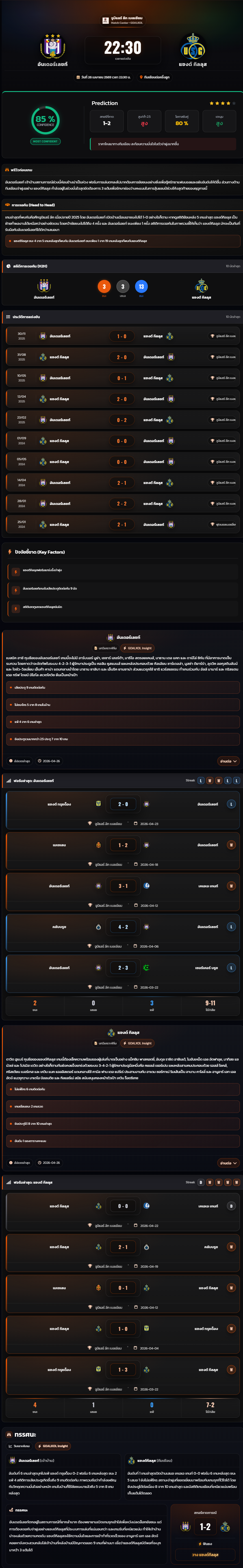 วิเคราะห์บอล เบลเยี่ยมโปรลีก 2025-26 อันเดอร์เลชท์ vs แซงต์ กิลลุส