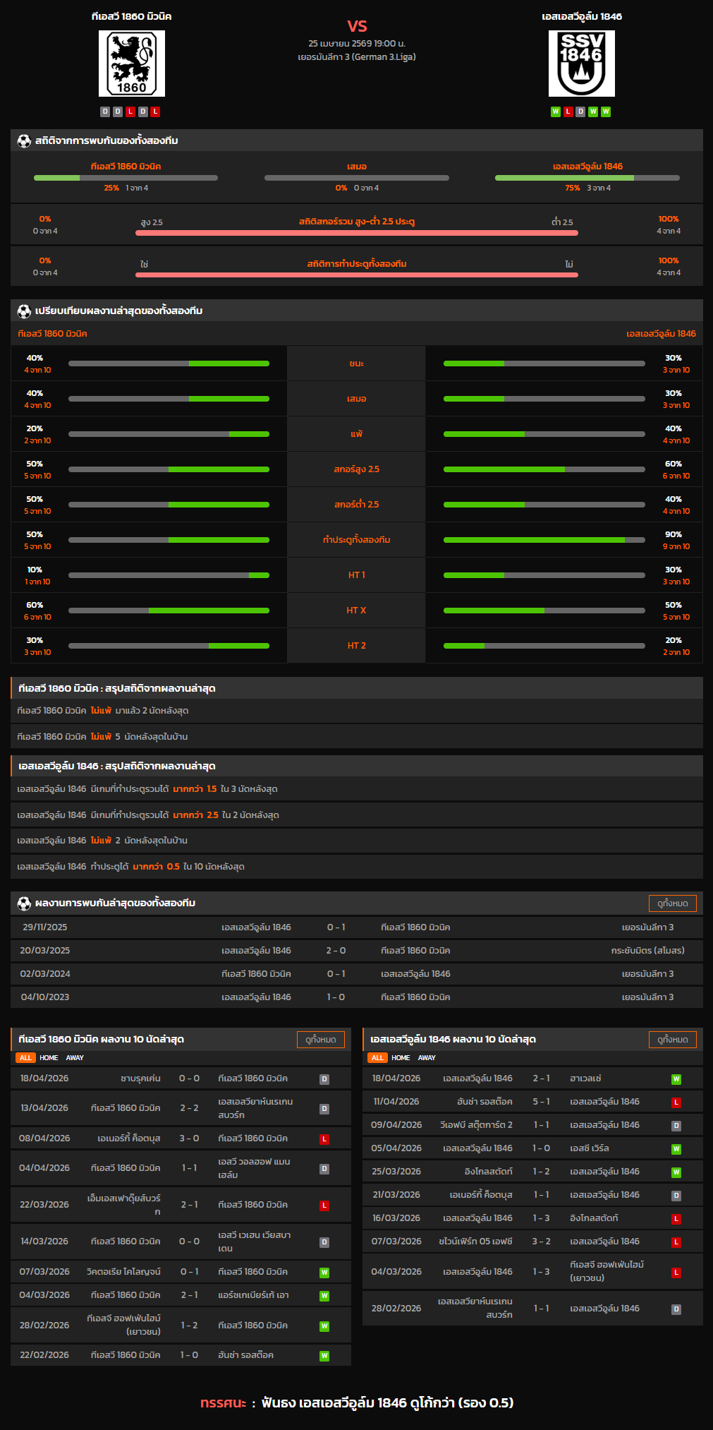 วิเคราะห์บอล เยอรมันลีกา 3 2025-26 ทีเอสวี 1860 มิวนิค VS เอสเอสวีอูล์ม 1846