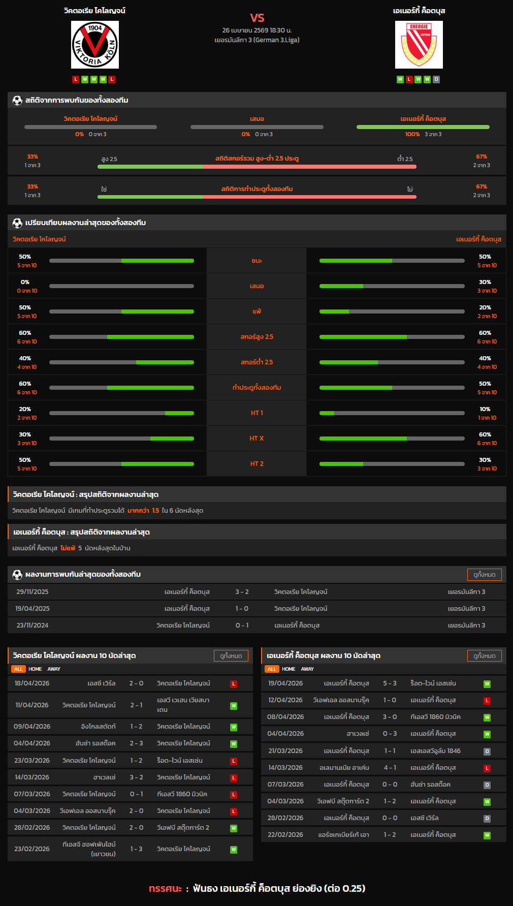 วิเคราะห์บอล เยอรมันลีกา 3 2025-26 วิคตอเรีย โคโลญจน์ VS เอเนอร์กี้ ค็อตบุส