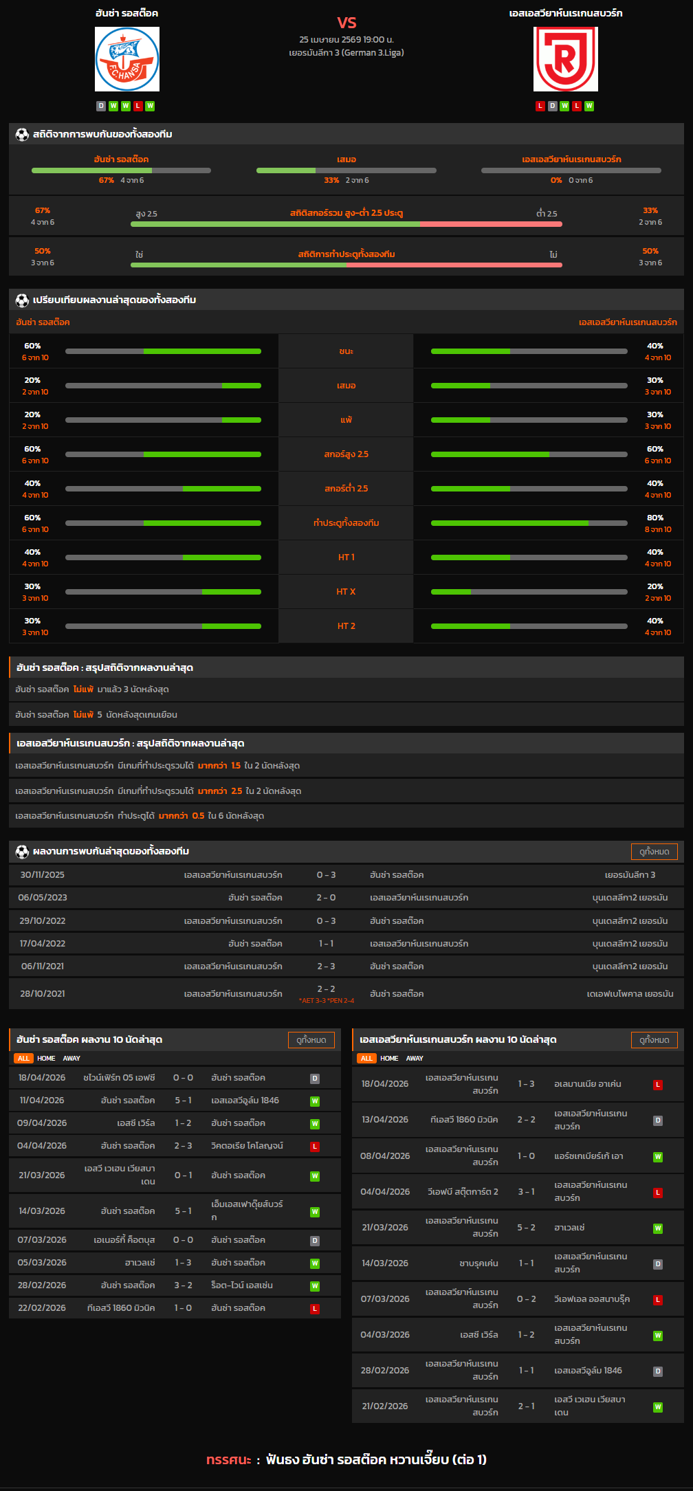 วิเคราะห์บอล เยอรมันลีกา 3 2025-26 ฮันซ่า รอสต๊อค VS เอสเอสวียาห์นเรเกนสบวร์ก