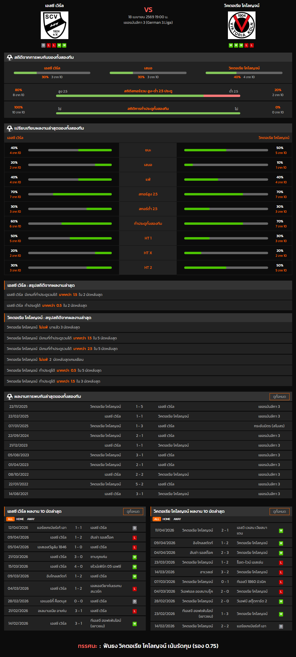 วิเคราะห์บอล เยอรมันลีกา 3 2025-26 เอสซี เวิร์ล VS วิคตอเรีย โคโลญจน์