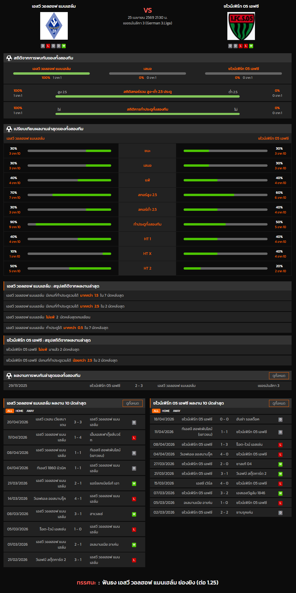 วิเคราะห์บอล เยอรมันลีกา 3 2025-26 เอสวี วอลฮอฟ แมนเฮล์ม VS ชไวน์เฟิร์ท 05 เอฟซี
