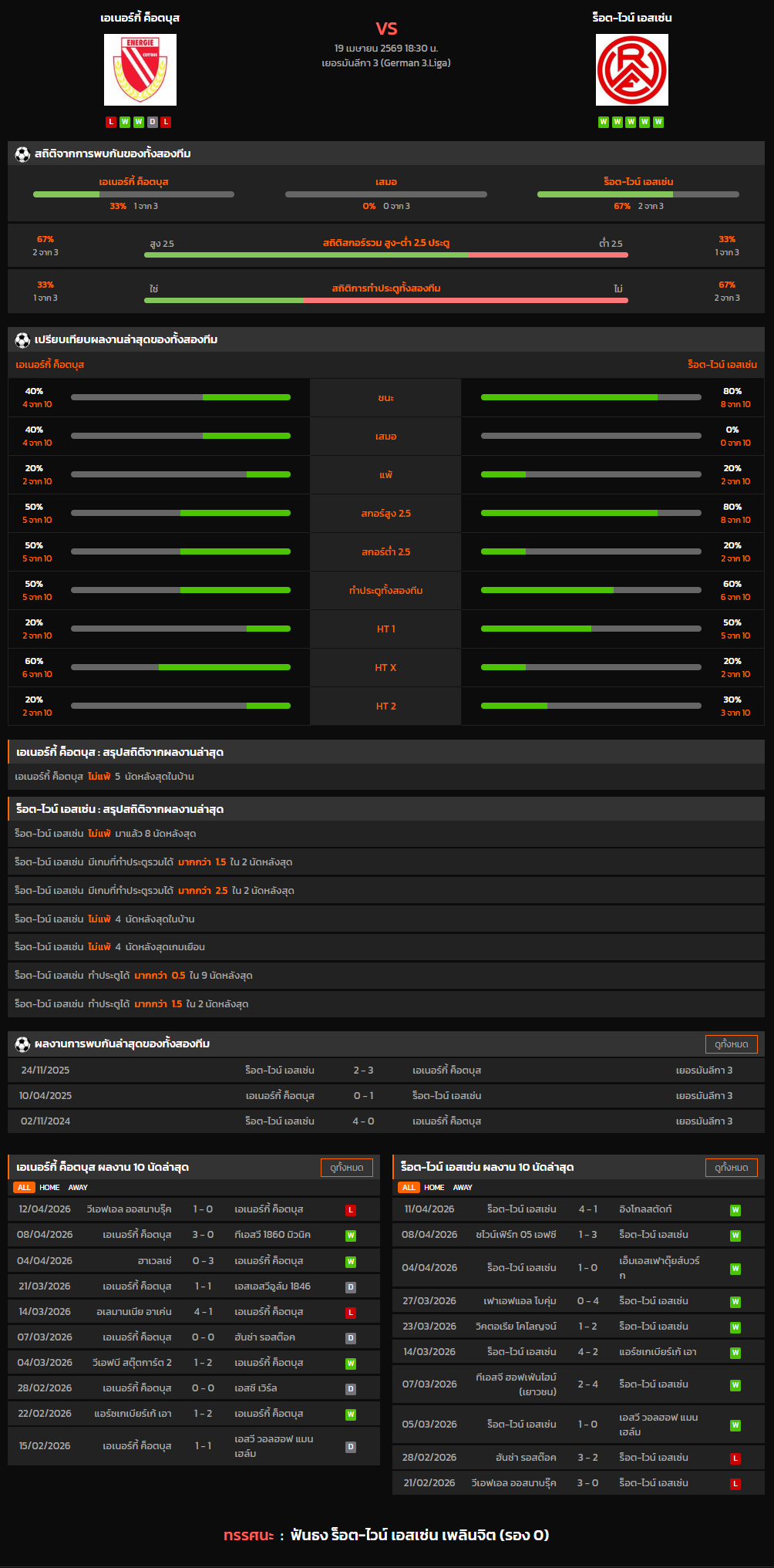 วิเคราะห์บอล เยอรมันลีกา 3 2025-26 เอเนอร์กี้ ค็อตบุส VS ร็อต-ไวน์ เอสเซ่น