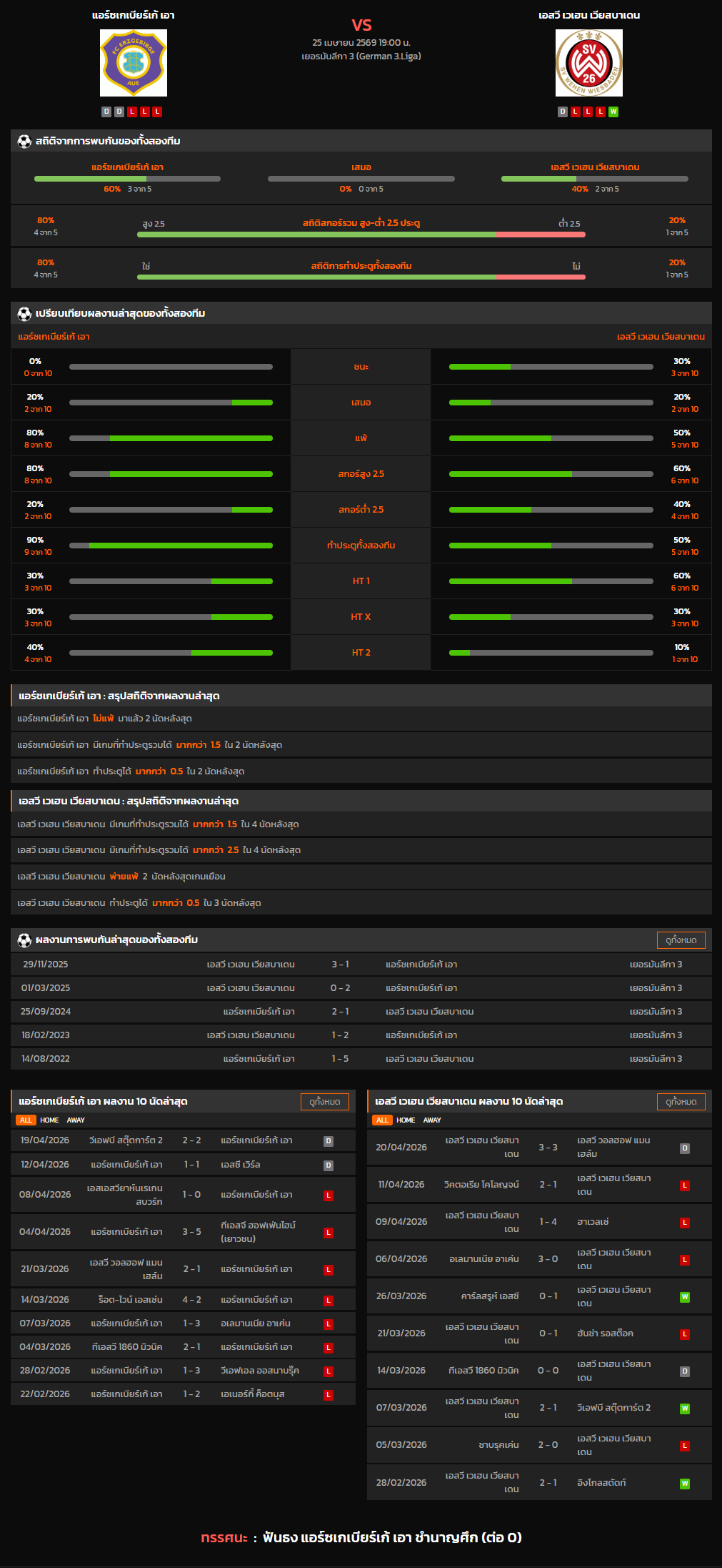 วิเคราะห์บอล เยอรมันลีกา 3 2025-26 แอร์ซเกเบียร์เก้ เอา VS เอสวี เวเฮน เวียสบาเดน