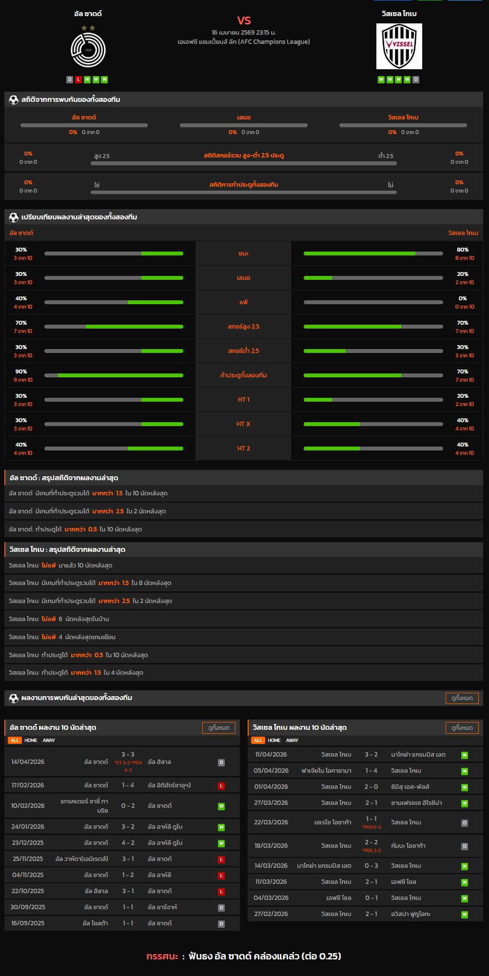 วิเคราะห์บอล เอเอฟซี แชมเปี้ยนส์ลีก อีลิท 2025-26 อัล ซาดด์ VS วิสเซล โกเบ