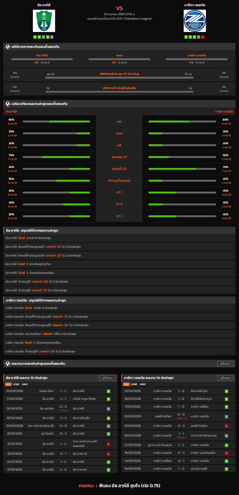 วิเคราะห์บอล เอเอฟซี แชมเปี้ยนส์ลีก อีลิท 2025-26 อัล อาห์ลี VS มาชิดา เซลเวีย