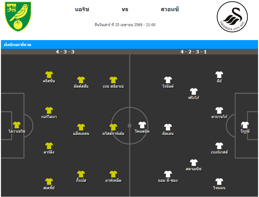 วิเคราะห์บอล แชมป์เปี้ยนชิพ อังกฤษ 2025-26 นอริช ซิตี้ VS สวอนซี ซิตี้ | วิเคราะห์บอล UFA7979
