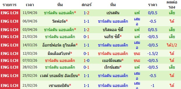 ราคาบอล : ชาร์ลตัน แอธเลติก ต่อ 0.5