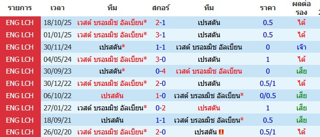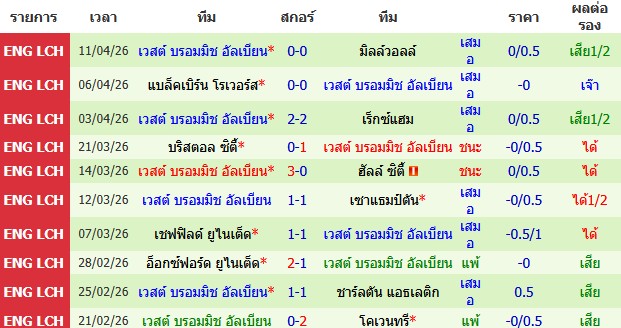 ราคาบอล : เวสต์บรอมวิช ต่อ 0/0.5