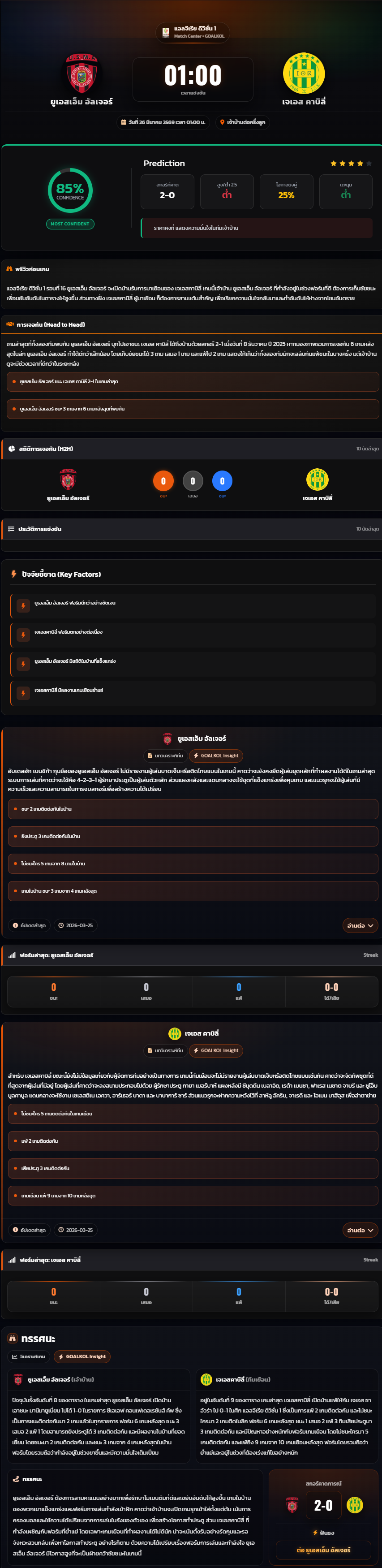 วิเคราะห์บอล แอลจีเรีย ดิวิชั่น 1 2025-26 ยูเอสเอ็ม อัลเจอร์ vs เจเอส คาบิลี่