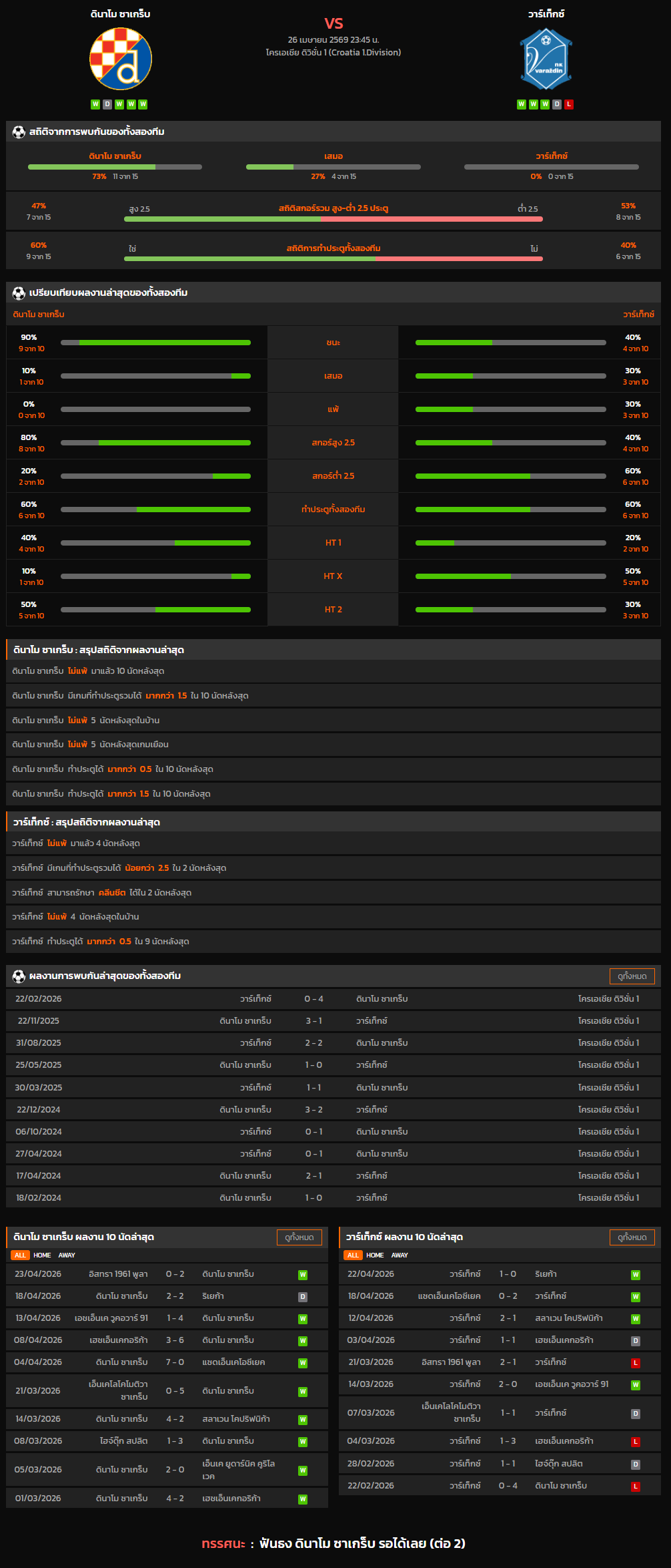 วิเคราะห์บอล โครเอเชีย ดิวิชั่น 1 2025-26 ดินาโม ซาเกร็บ VS วาร์เท็กซ์