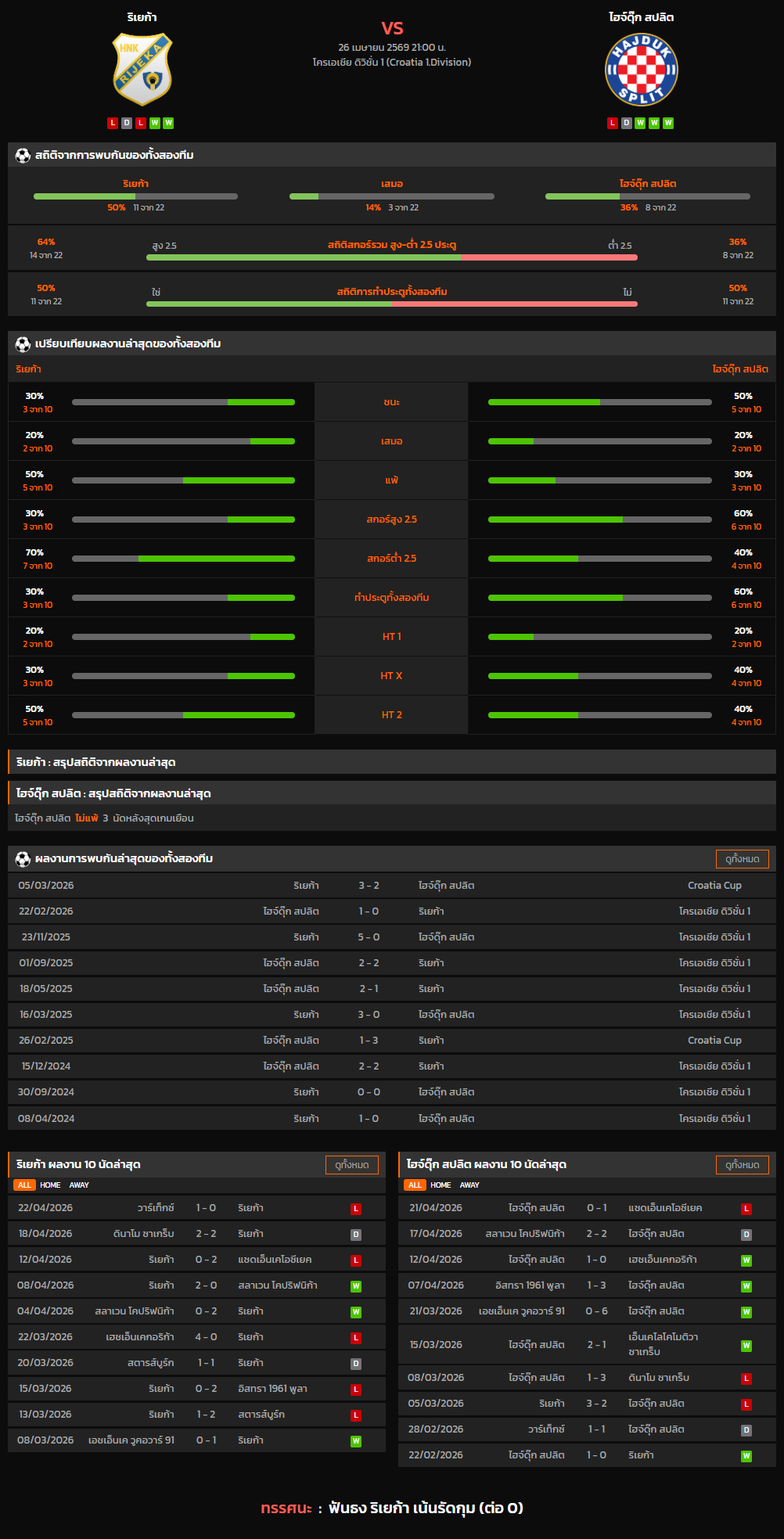 วิเคราะห์บอล โครเอเชีย ดิวิชั่น 1 2025-26 ริเยก้า VS ไฮจ์ดุ๊ก สปลิต