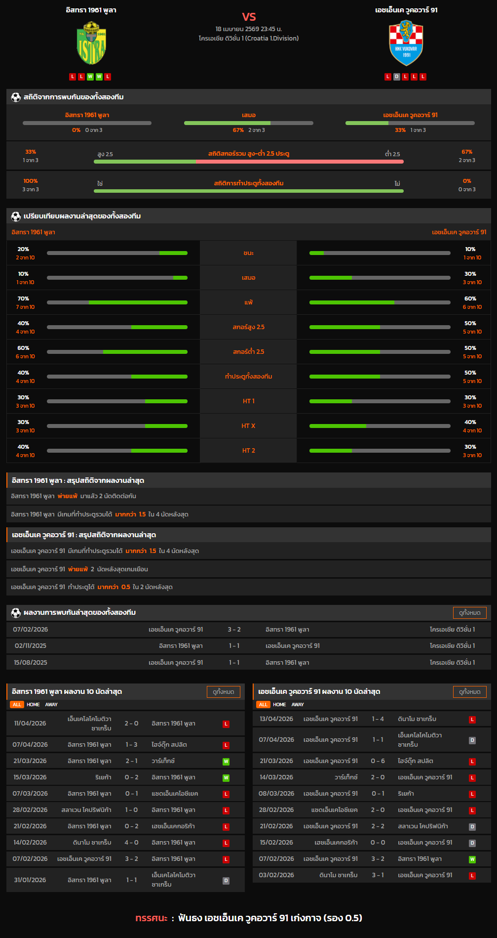 วิเคราะห์บอล โครเอเชีย ดิวิชั่น 1 2025-26 อิสทรา 1961 พูลา VS เอชเอ็นเค วูคอวาร์ 91