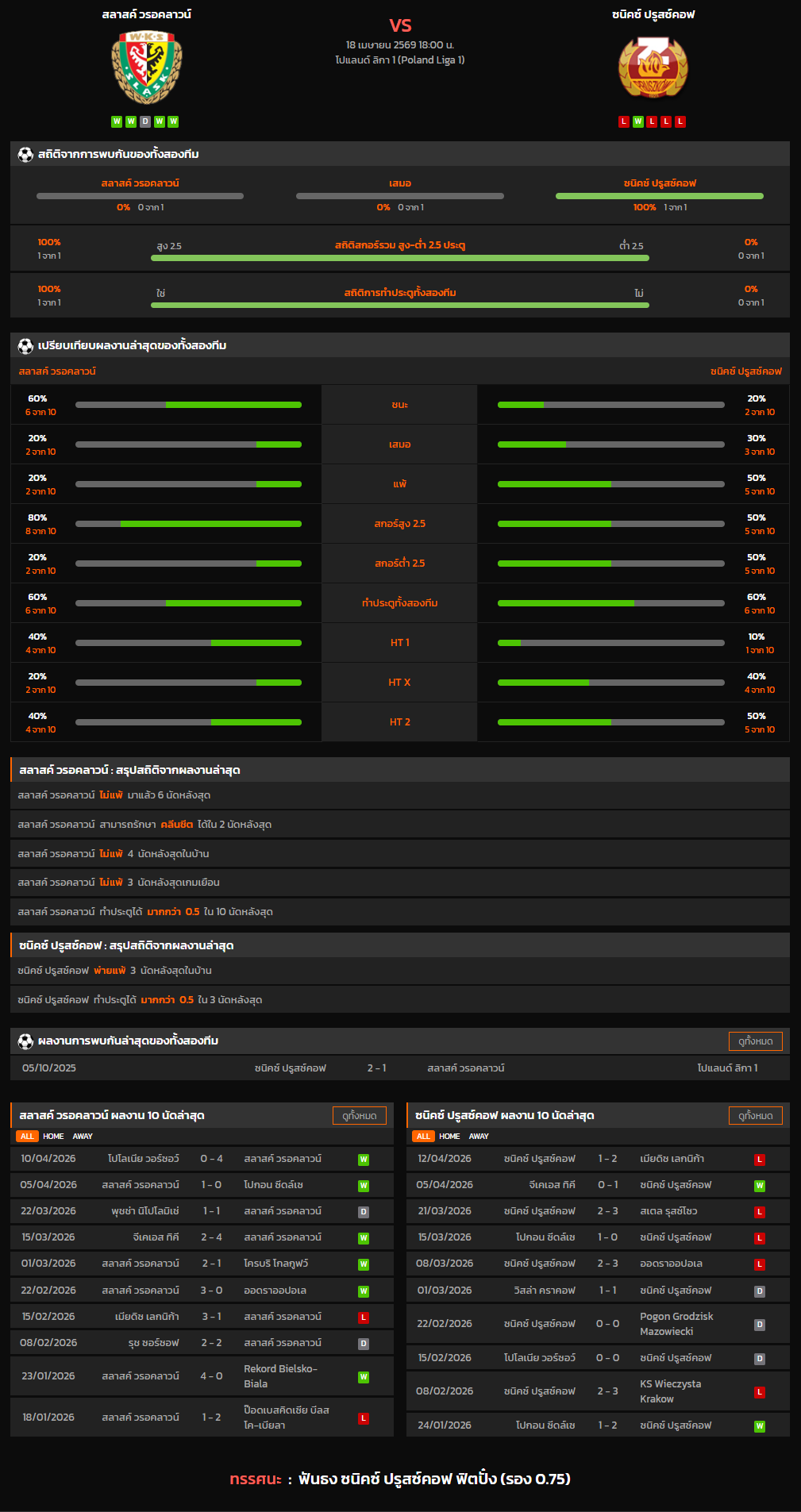 วิเคราะห์บอล โปแลนด์ ดิวิชั่น 2 2025-26 สลาสค์ วรอคลาวน์ VS ซนิคซ์ ปรูสซ์คอฟ