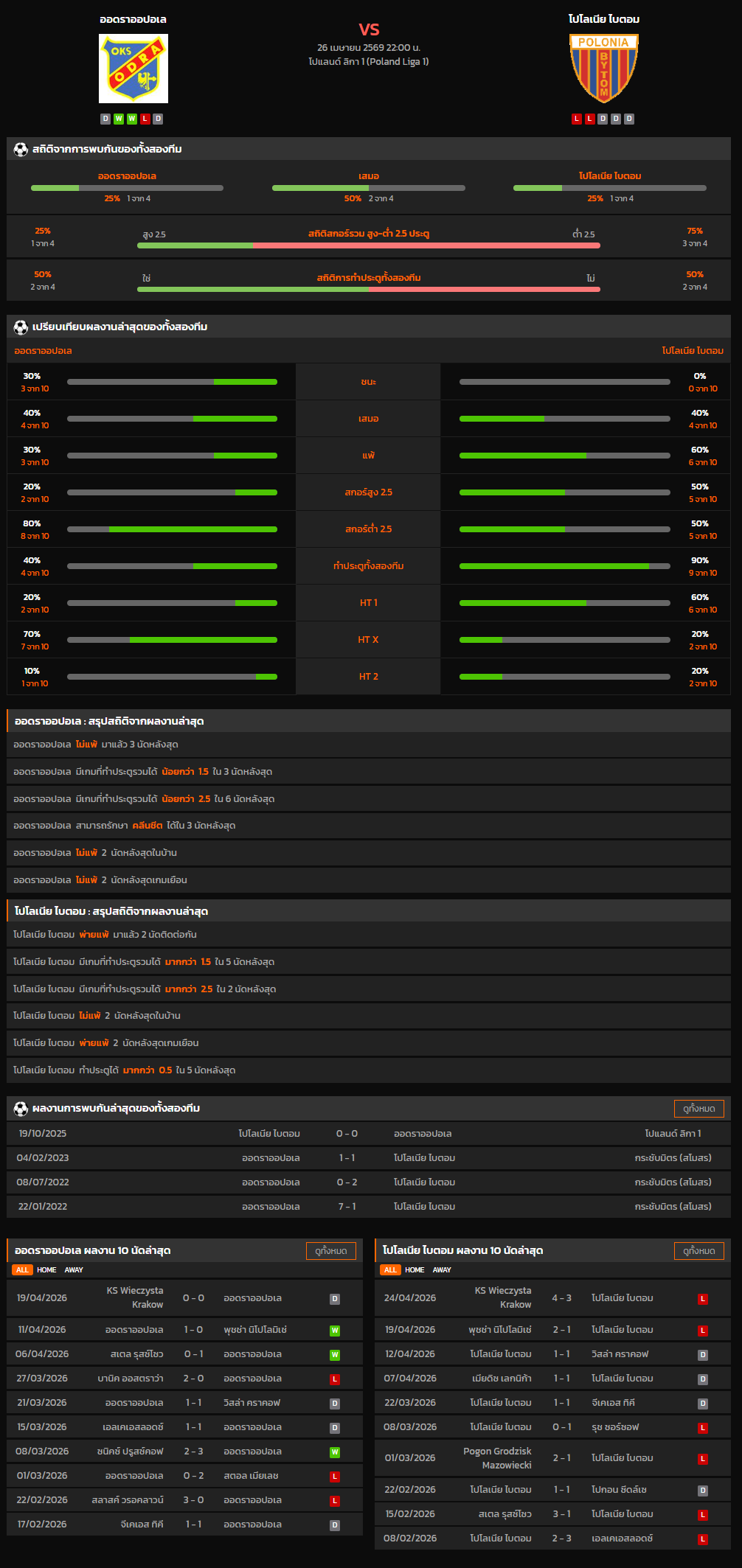 วิเคราะห์บอล โปแลนด์ ดิวิชั่น 2 2025-26 ออดราออปอเล VS โปโลเนีย ไบตอม | วิเคราะห์บอล UFA7979