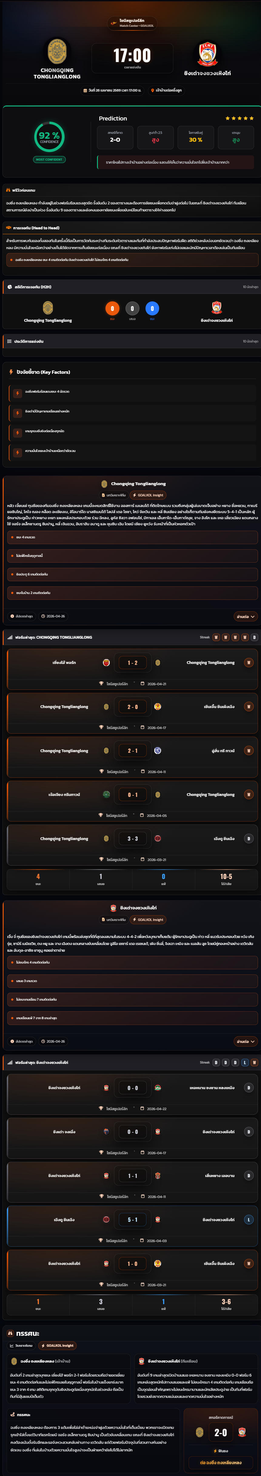 วิเคราะห์บอล ไชน่า ซุปเปอร์ลีก 2025-26 ฉงชิ่ง ถงเหลียงหลง vs ชิงเต่าจงชวงเหิงไท่