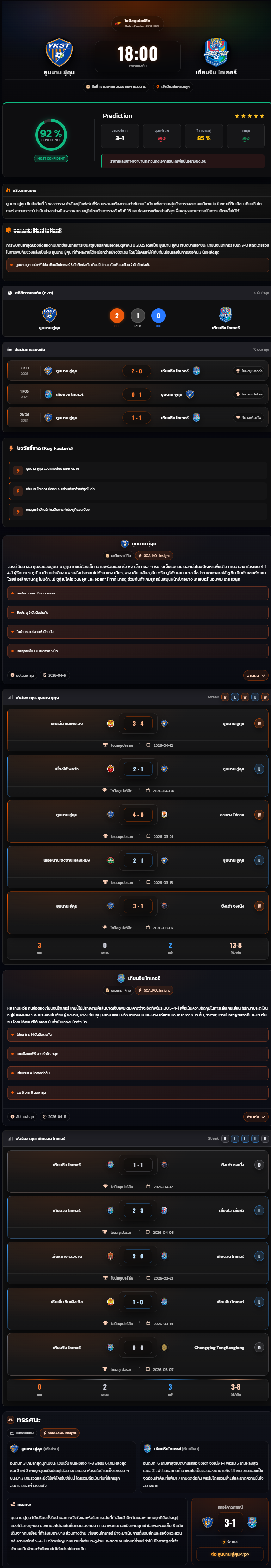 วิเคราะห์บอล ไชน่า ซุปเปอร์ลีก 2025-26 ยูนนาน ยู่คุน vs เทียนจิน ไทเกอร์
