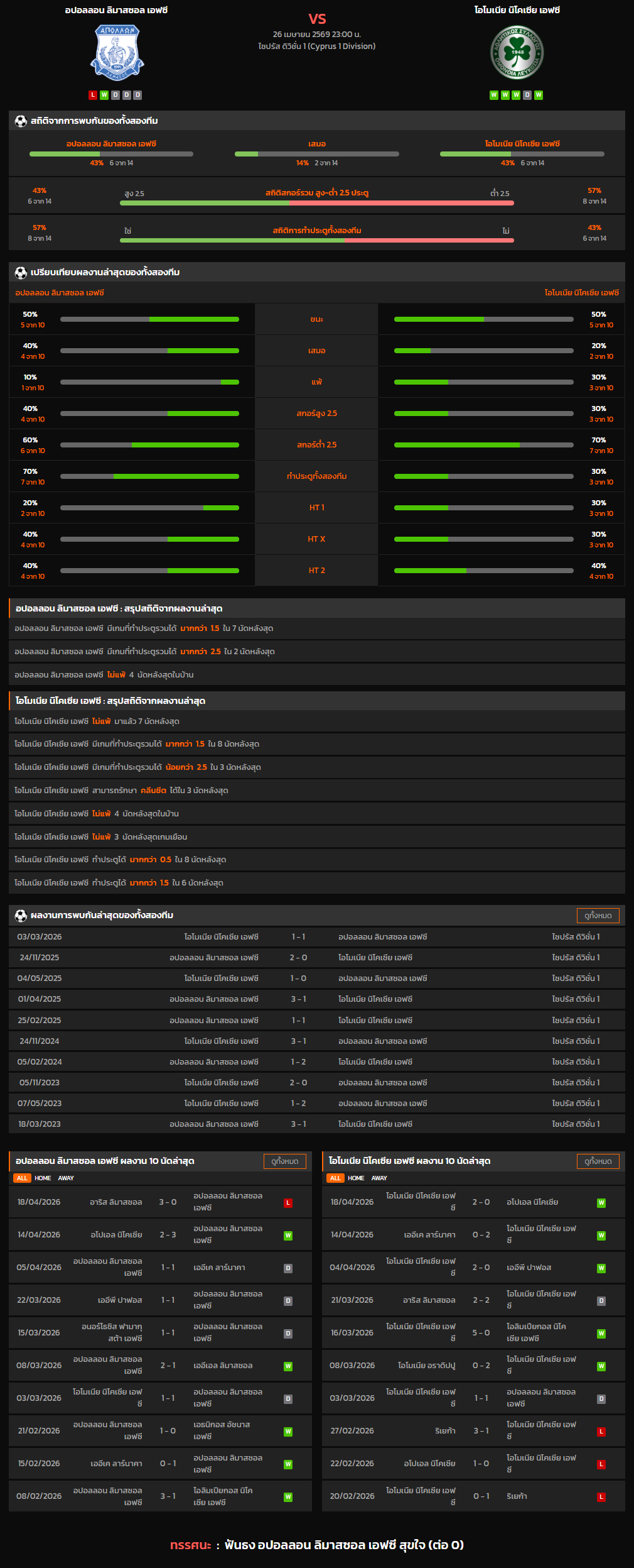 วิเคราะห์บอล ไซปรัส ดิวิชั่น 1 2025-26 อปอลลอน ลิมาสซอล เอฟซี VS โอโมเนีย นิโคเซีย เอฟซี
