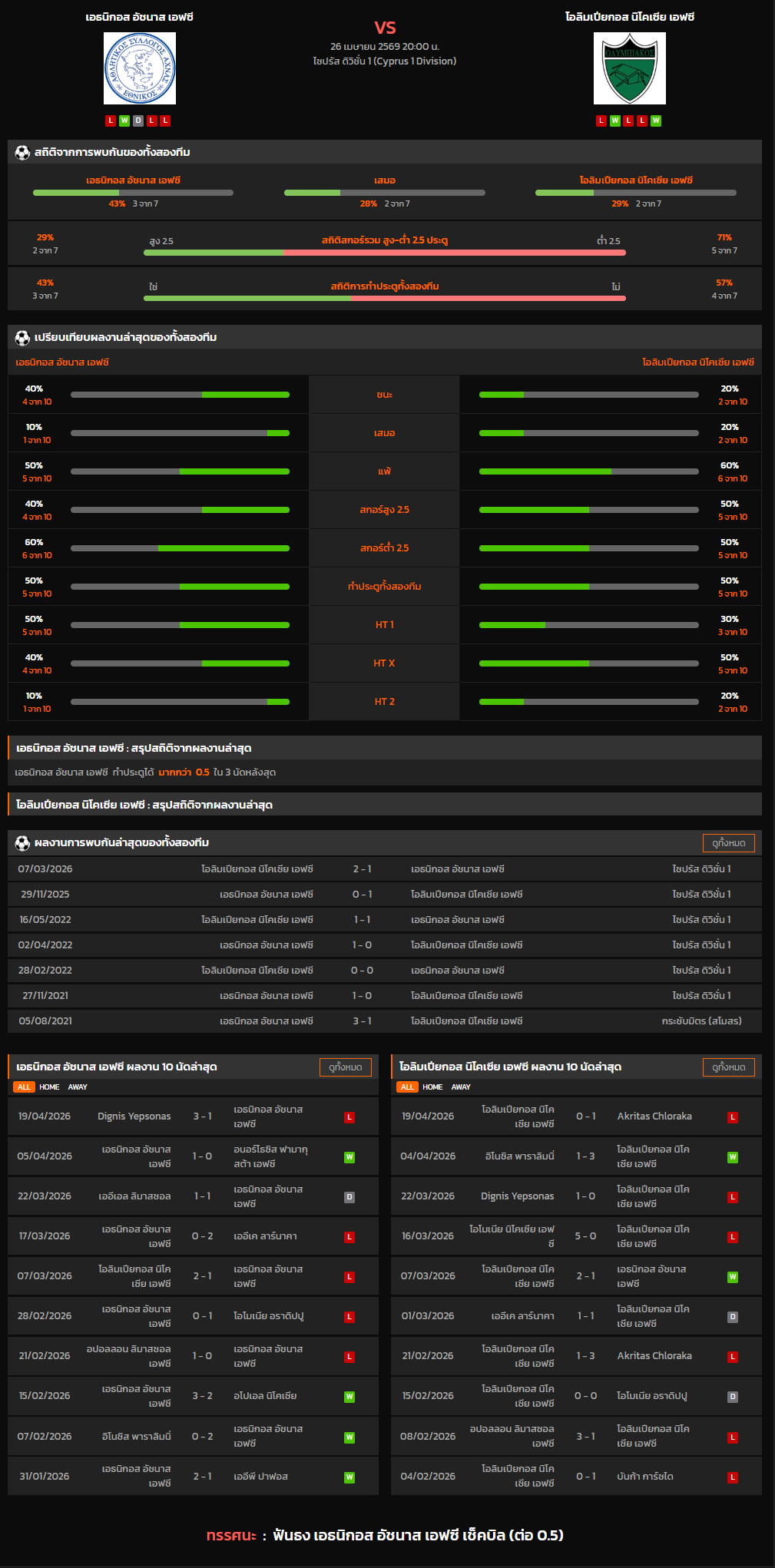 วิเคราะห์บอล ไซปรัส ดิวิชั่น 1 2025-26 เอธนิกอส อัชนาส เอฟซี VS โอลิมเปียกอส นิโคเซีย เอฟซี
