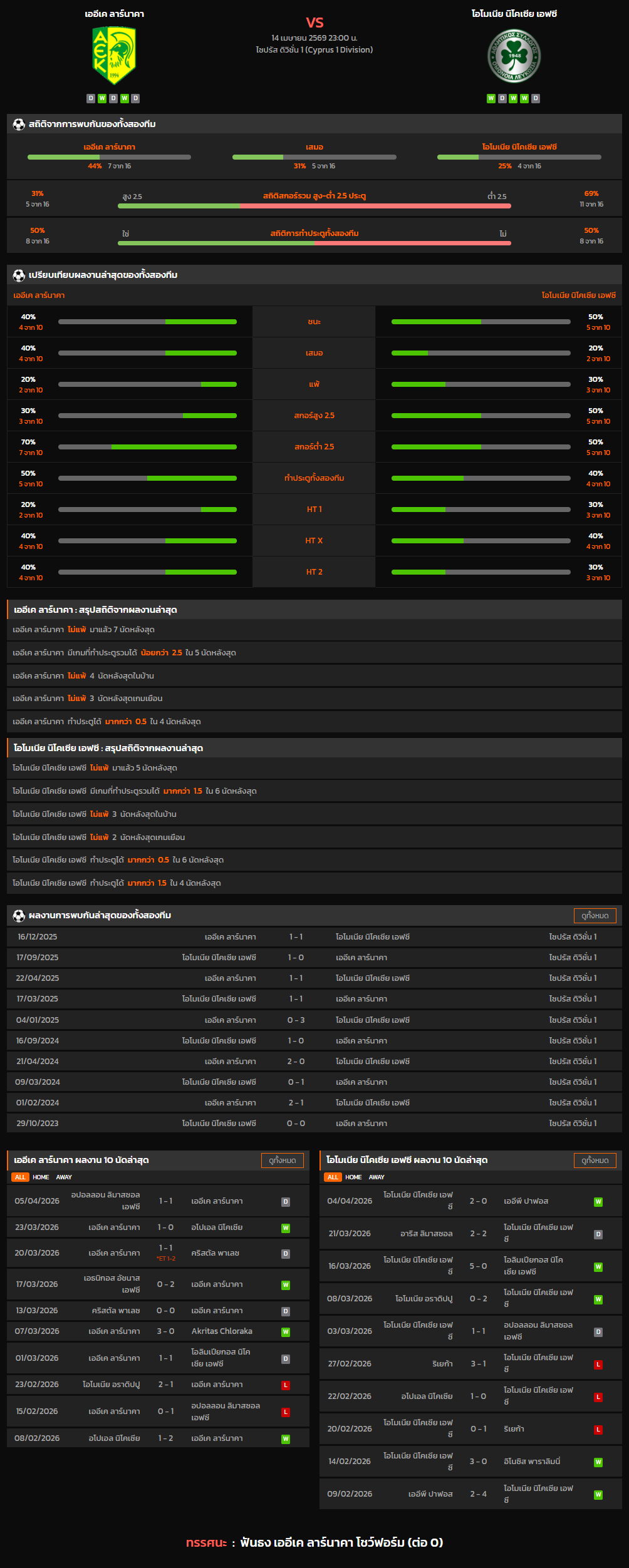 วิเคราะห์บอล ไซปรัส ดิวิชั่น 1 2025-26 เออีเค ลาร์นาคา VS โอโมเนีย นิโคเซีย เอฟซี