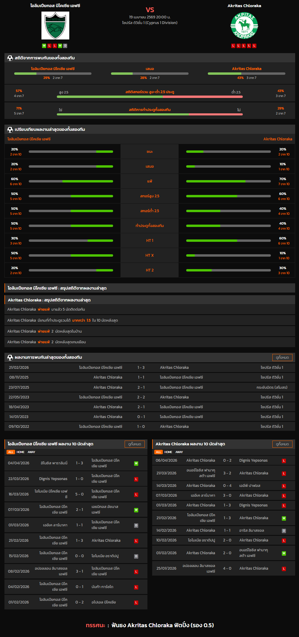 วิเคราะห์บอล ไซปรัส ดิวิชั่น 1 2025-26 โอลิมเปียกอส นิโคเซีย เอฟซี VS Akritas Chloraka