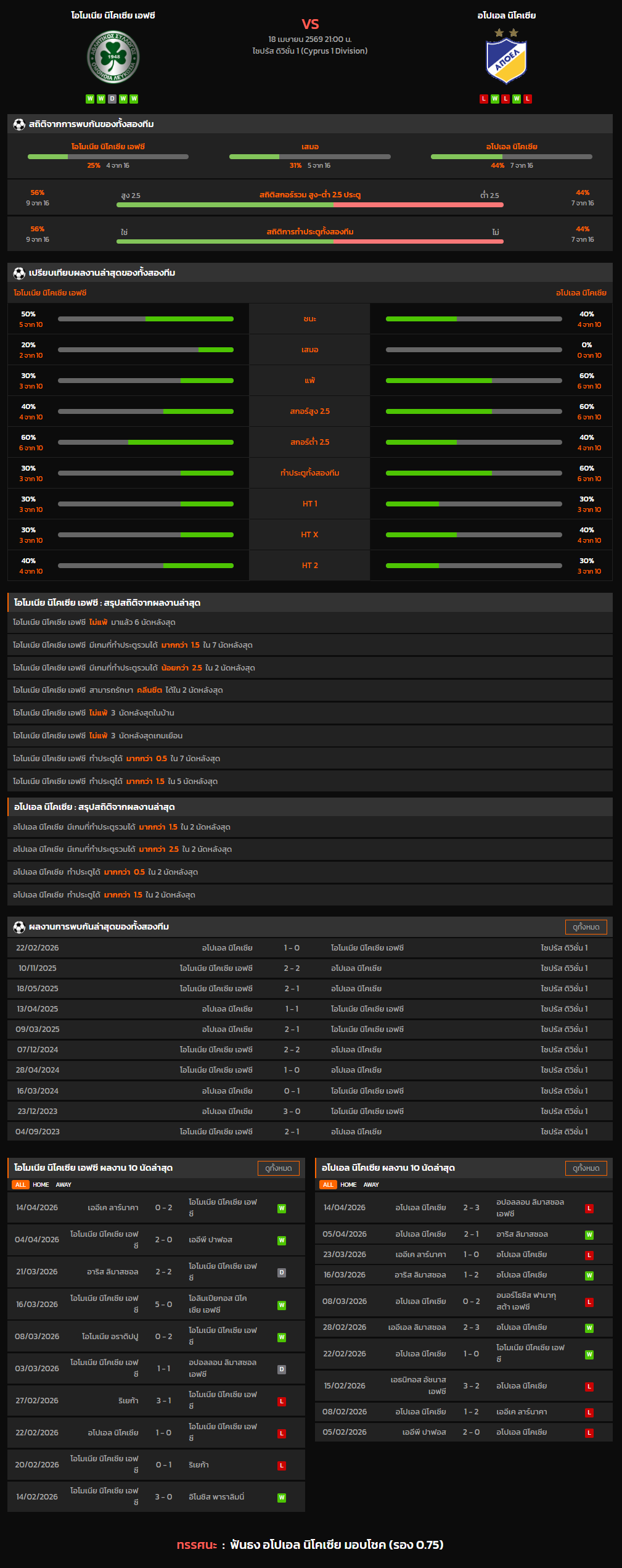 วิเคราะห์บอล ไซปรัส ดิวิชั่น 1 2025-26 โอโมเนีย นิโคเซีย เอฟซี VS อโปเอล นิโคเซีย