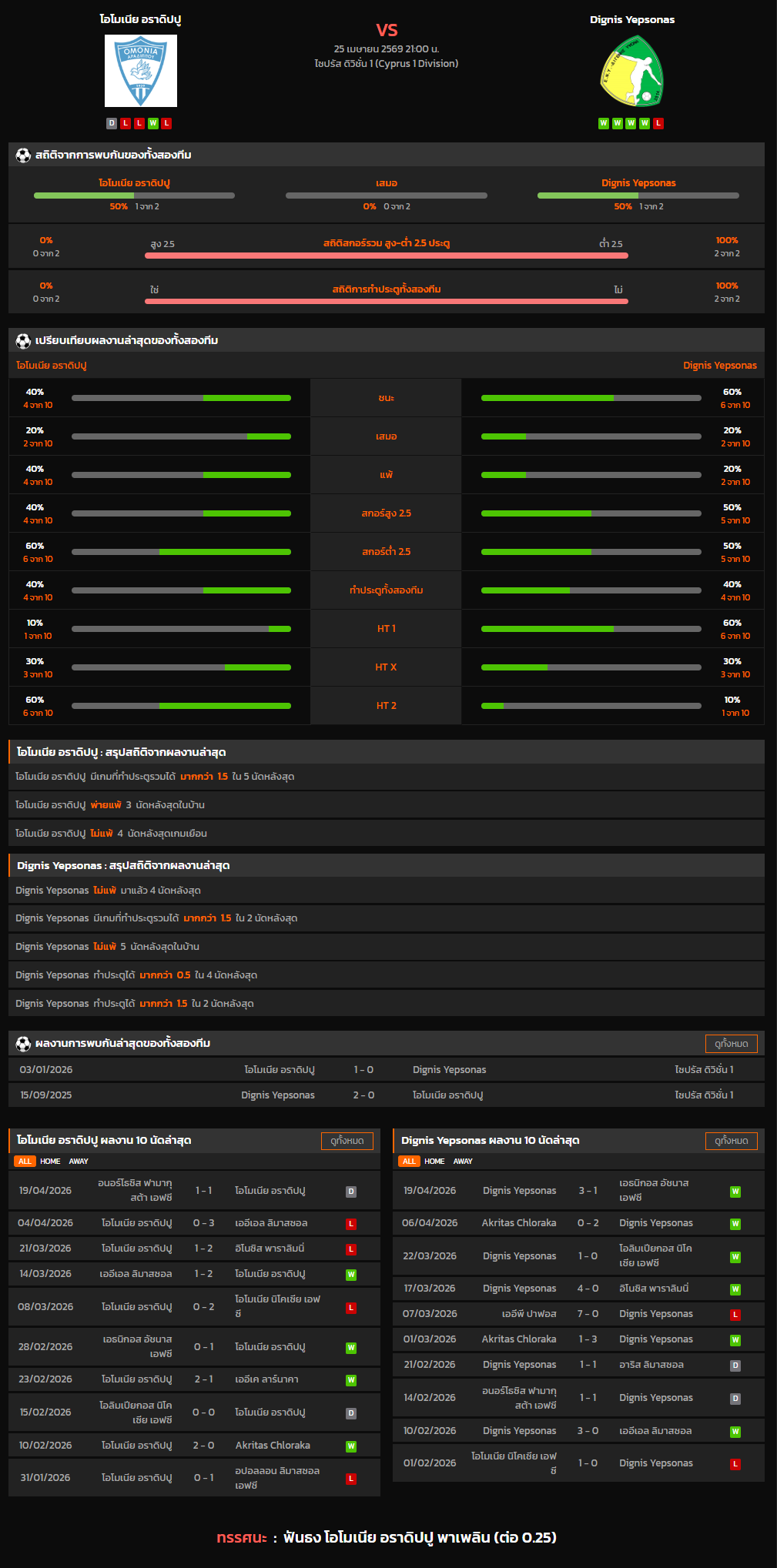 วิเคราะห์บอล ไซปรัส ดิวิชั่น 1 2025-26 โอโมเนีย อราดิปปู VS Dignis Yepsonas