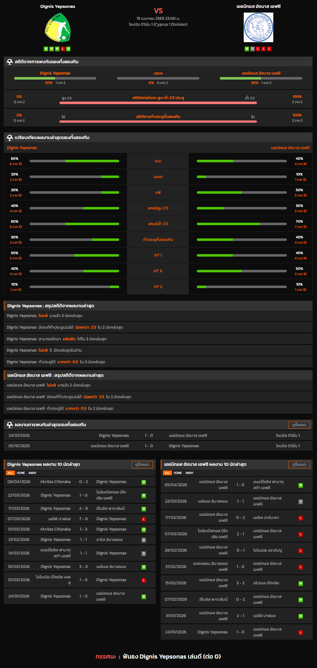 วิเคราะห์บอล ไซปรัส ดิวิชั่น 1 2025-26 Dignis Yepsonas VS เอธนิกอส อัชนาส เอฟซี