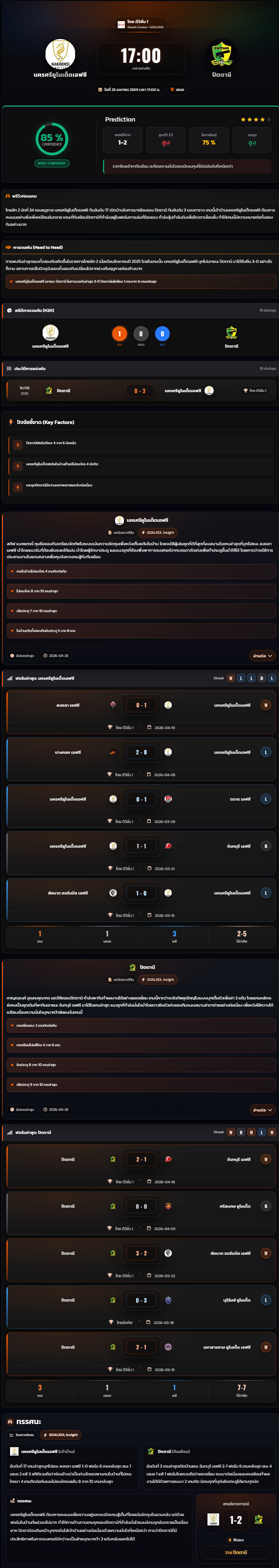วิเคราะห์บอล ไทยแชมเปี้ยนชิพ 2025-26 นครศรียูไนเต็ดเอฟซี vs ปัตตานี