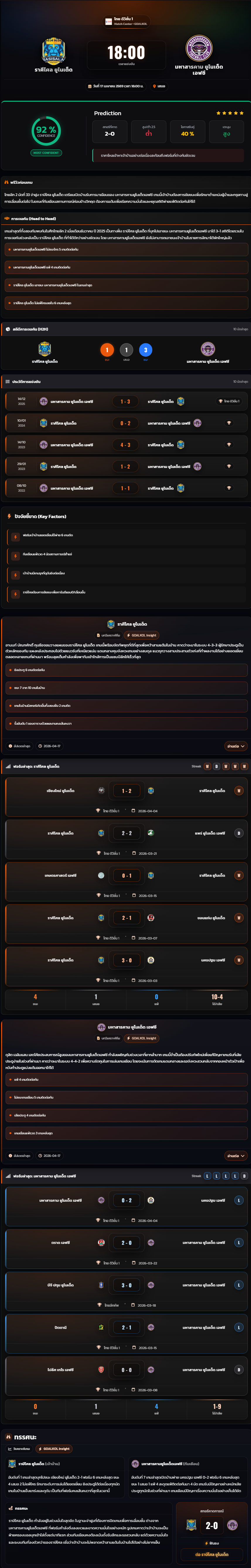 วิเคราะห์บอล ไทยแชมเปี้ยนชิพ 2025-26 ราศีไศล ยูไนเต็ด vs มหาสารคาม ยูไนเต็ด เอฟซี | วิเคราะห์บอล UFA7979