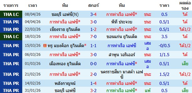 ผลงาน 10 นัดหลังสุดของทีม การท่าเรือ เอฟซี