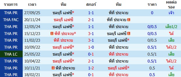 ราคาบอล : พีที ประจวบ ต่อ 0.5