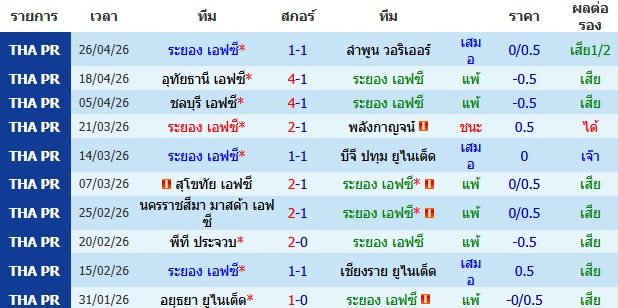 ผลงาน 10 นัดหลังสุดของทีม ระยอง เอฟซี