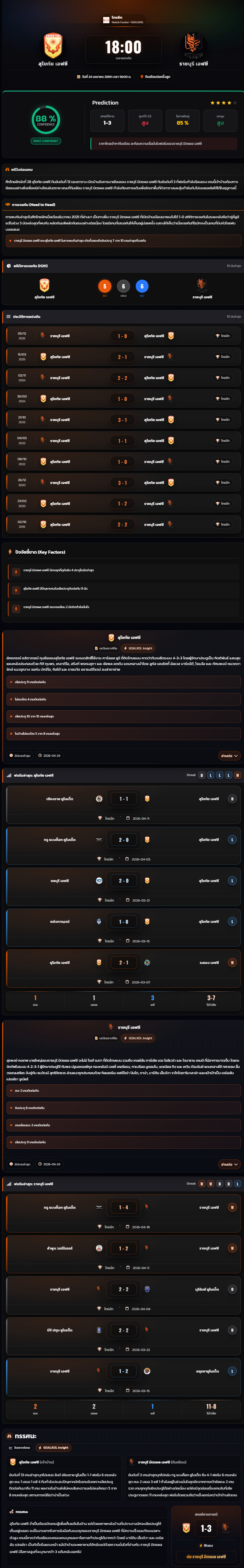วิเคราะห์บอล ไทยแลนด์พรีเมียร์ลีก 2025-26 สุโขทัย เอฟซี vs ราชบุรี เอฟซี