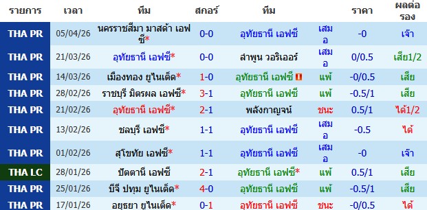 ราคาบอล : อุทัยธานี เอฟซี ต่อ 0/0.5