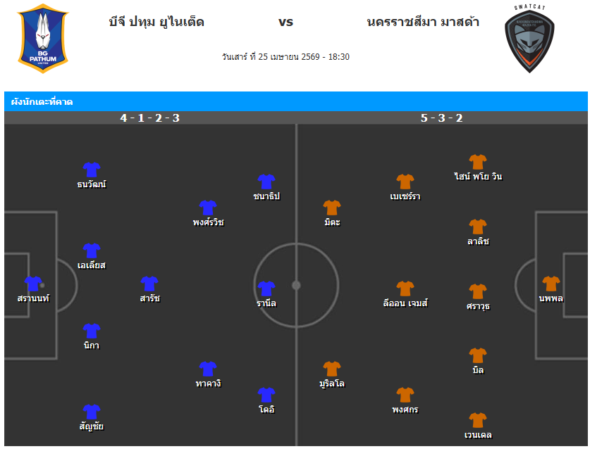 วิเคราะห์บอล ไทยแลนด์ พรีเมียร์ลีก 2025-26 บีจี ปทุม ยูไนเต็ด VS นครราชสีมา เอฟซี