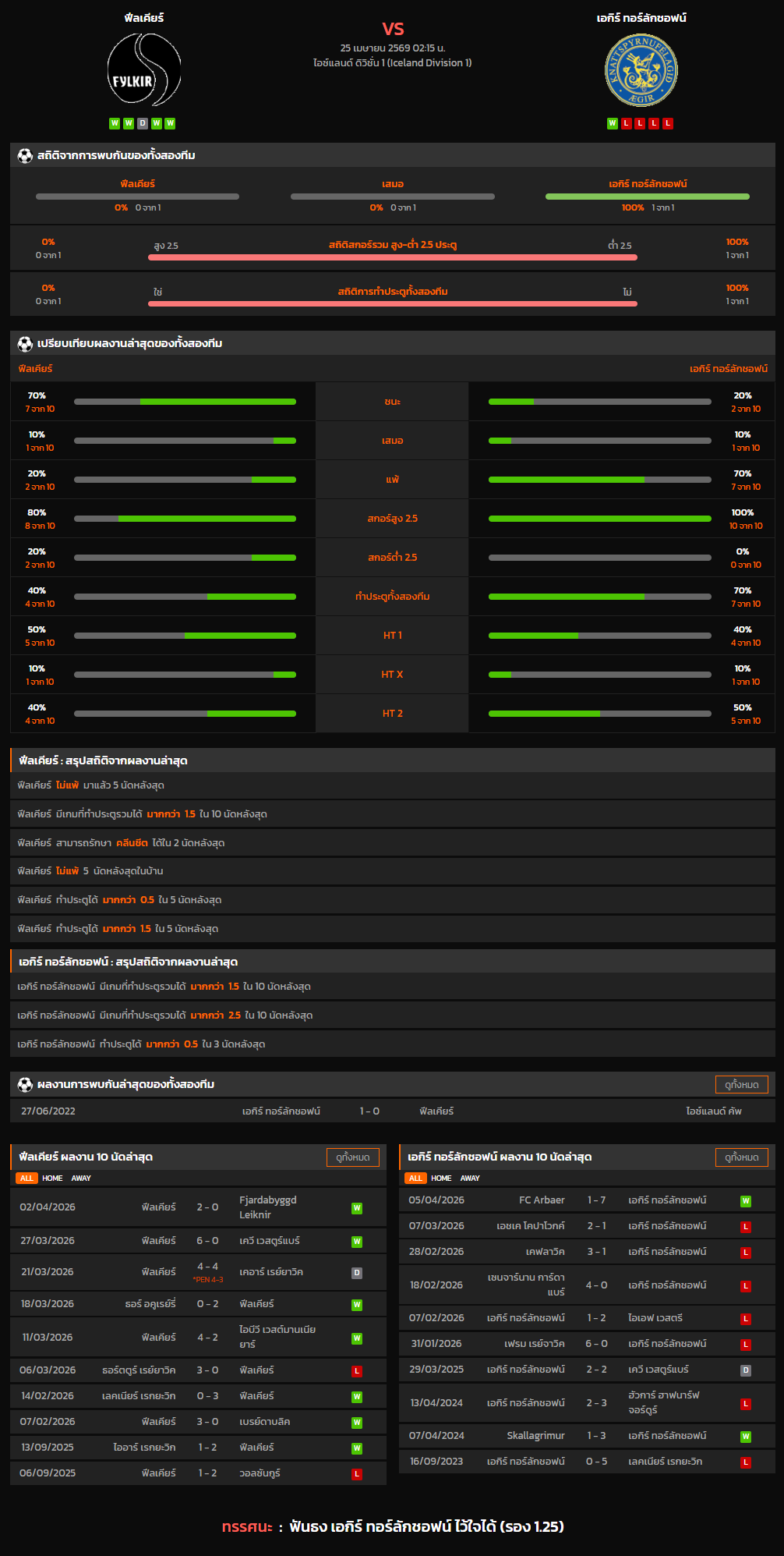 วิเคราะห์บอล ไอซ์แลนด์ ดิวิชั่น 1 2025-26 ฟีลเคียร์ VS เอกิร์ ทอร์ลักชอฟน์