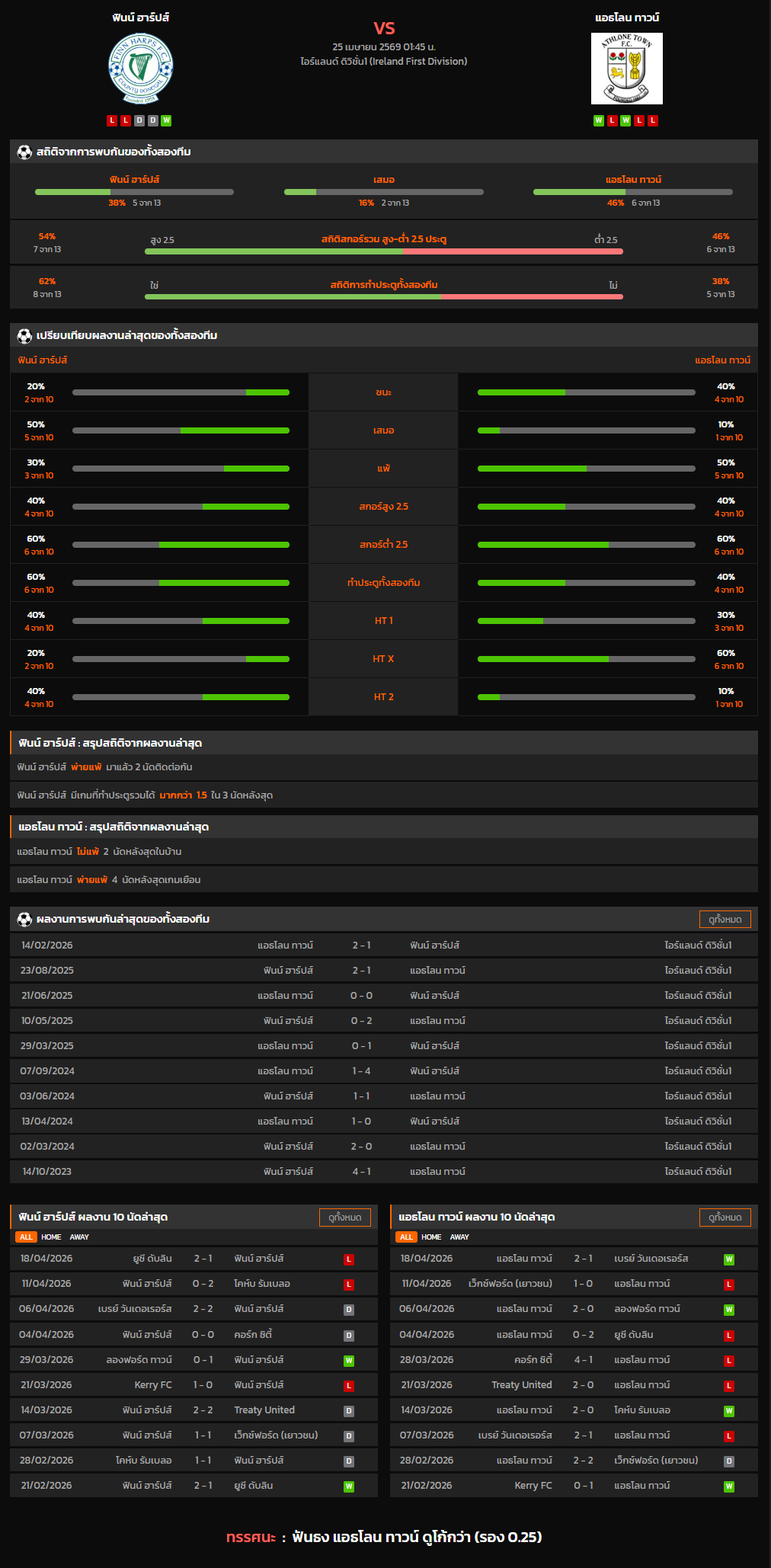 วิเคราะห์บอล ไอร์แลนด์ ดิวิชั่น 1 2025-26 ฟินน์ ฮาร์ปส์ VS แอธโลน ทาวน์