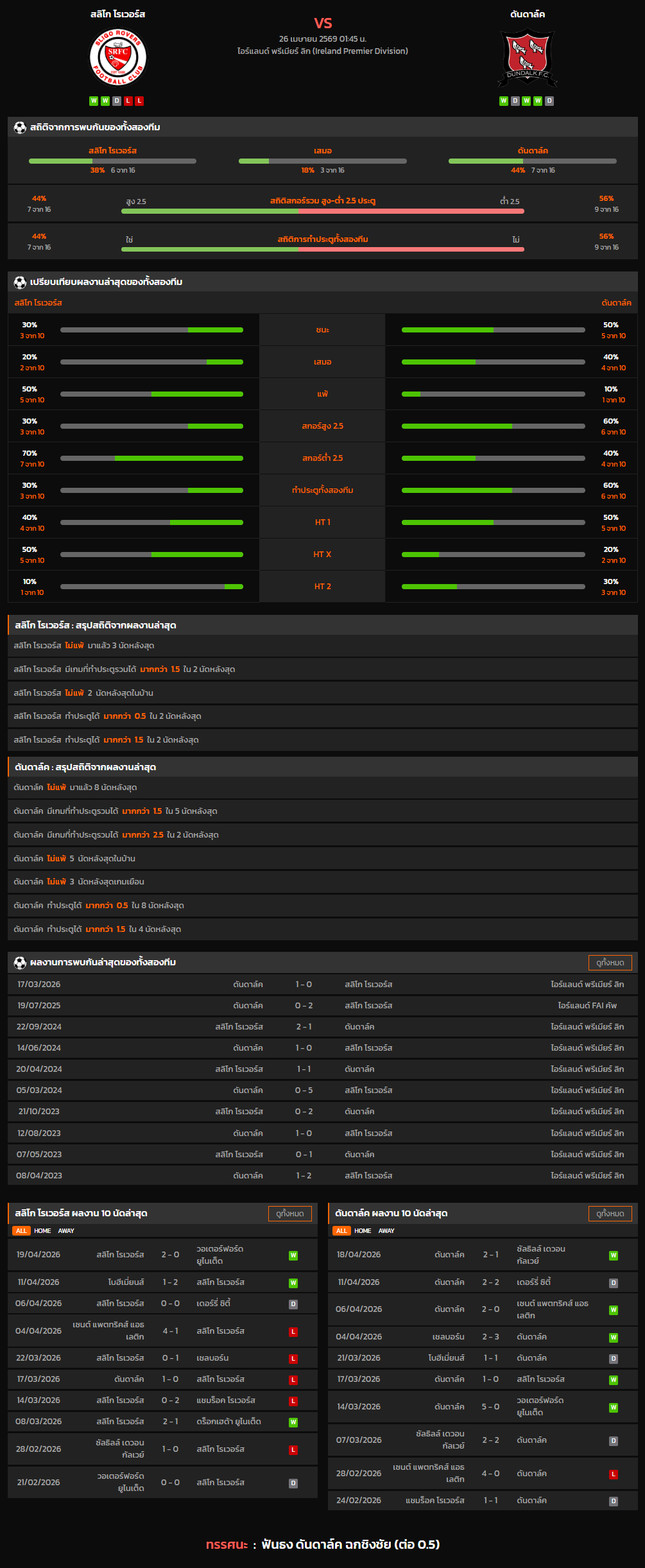 วิเคราะห์บอล ไอร์แลนด์ พรีเมียร์ลีก 2025-26 สลิโก โรเวอร์ส VS ดันดาล์ค