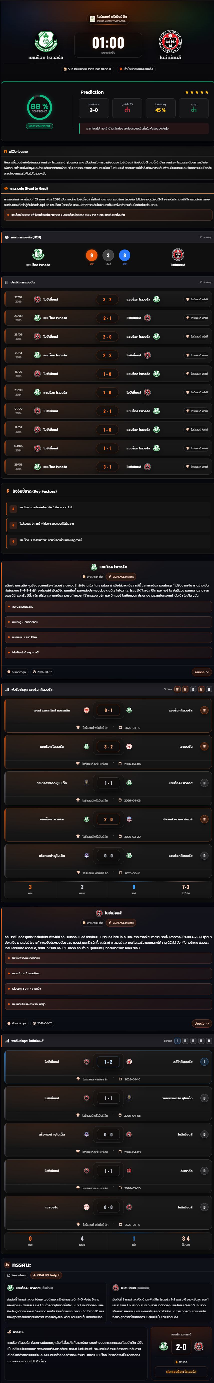 วิเคราะห์บอล ไอร์แลนด์ พรีเมียร์ลีก 2025-26 แชมร็อค โรเวอร์ส vs โบฮีเมี่ยนส์